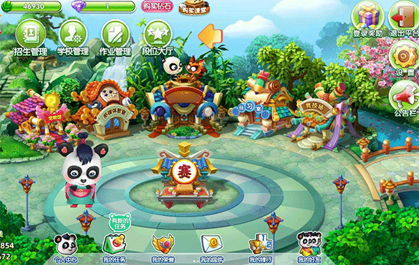 “宠物互动”(完成前面任务领取任务奖励后,可以去宠物馆喂养小熊猫,小熊猫随着活跃度和喂养竹笋币的提升不断成长升级,具体可于右上角宠物图鉴查看,喂养时注意等小熊猫念完围棋谚语后才能点击第二次,完成宠物互动任务共需要点击4次)
