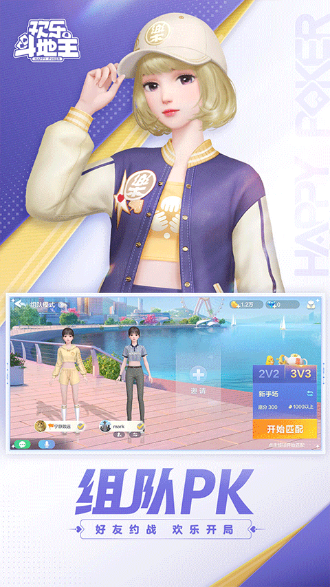 1、直接打开手机版的欢乐斗地主,在进入到首页界面以后,直接点击组队2V2,便能开始自由创建房间的选项。