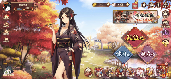 商城:氪金商店,包含十连抽、符咒(用于抽奖)购买以及小判(游戏货币,目前可通过成就/赛季等级/购买获得)。