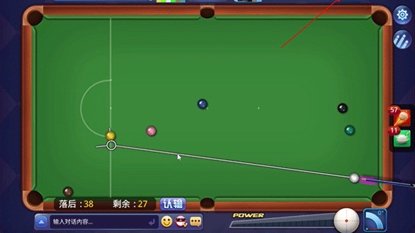 -而左边的力度表代表了击球的力量大小,上下滑动即可调整,是猛抽翻袋,还是轻碰入洞,任你选择;