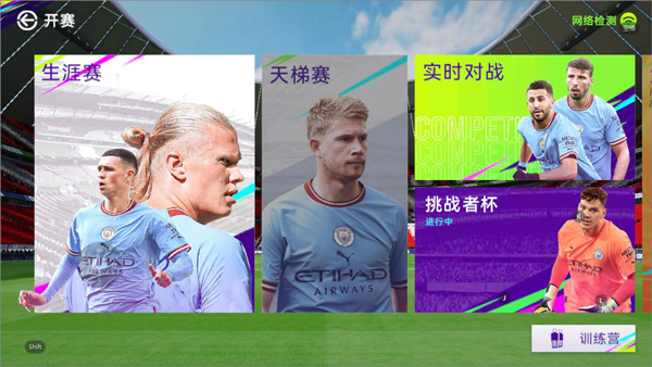 点击开赛可以看到有以下五个板块,分别是由生涯赛、天梯赛、实时对战、精英对决/挑战者杯和训练营构成,接下来就一一给玩家介绍一下每个比赛该怎么玩。