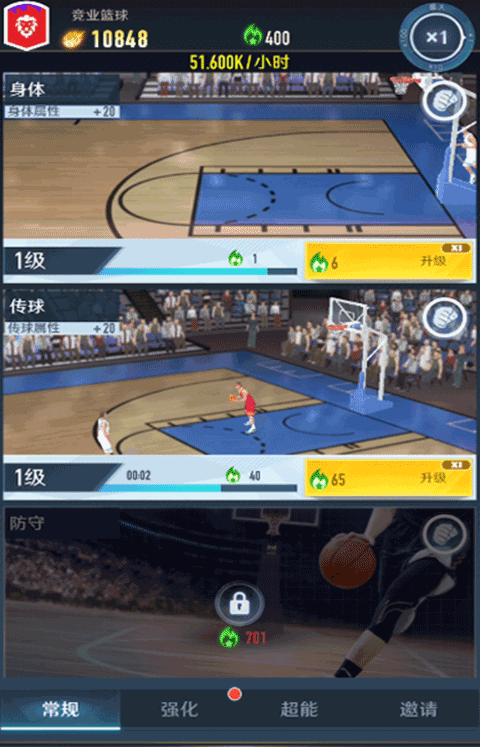 3、球员天赋:球员可以通过装备合成突破获得在某方面的提升,比如得分能力,罚球能力等。