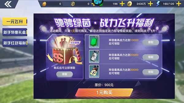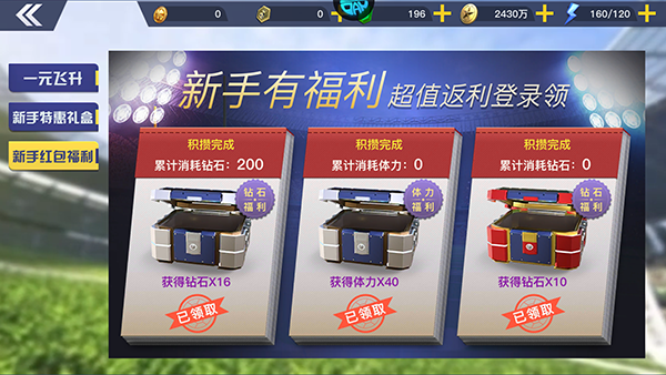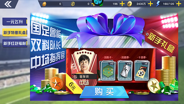 2、新手特惠礼盒,领取享受超强中场指挥官。