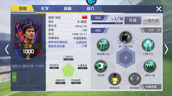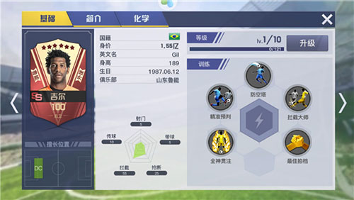 上图的吉尔,才是真正的极品卡,防空塔+预判都需要拦截属性,而属性加成技能是拦截大师,全加拦截属性,绝对完美的一张卡。如果不是真爱粉,千万不要盲目的追求某个大牌球星,一定要用技能搭配完美的球员,才能发挥最大作用。在这游戏中,万金油型的球员不是最好的选择。