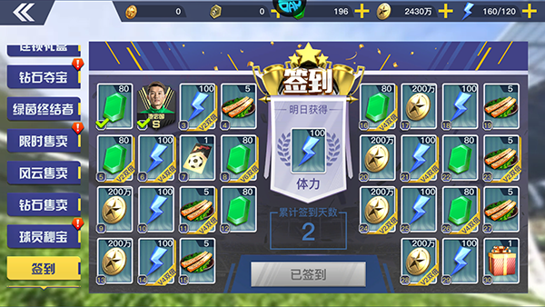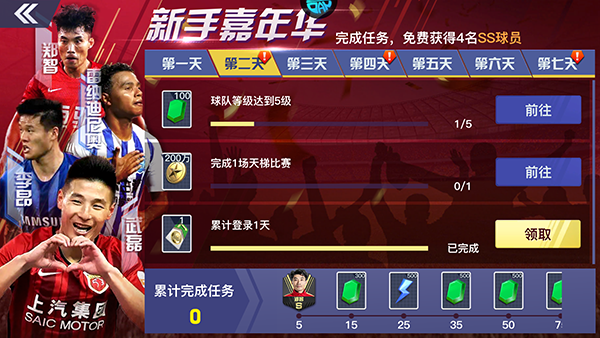 4、新手嘉年华,免费领取超强SS球员。