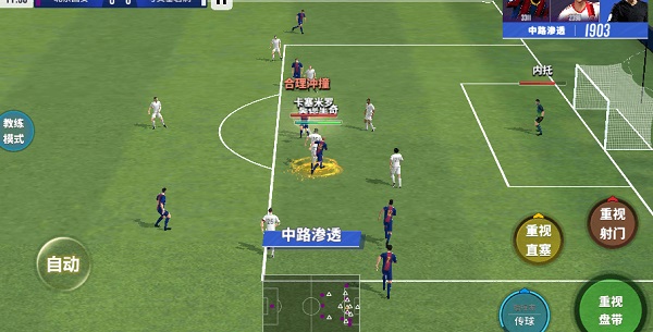 所以我总结了一下指挥的一些技巧,当你在半场压制对方时你可以长按指挥上抢,尽可能在半场抢断完成进攻,大部分时间能压制在对方半场你进球的机会必然高很多。