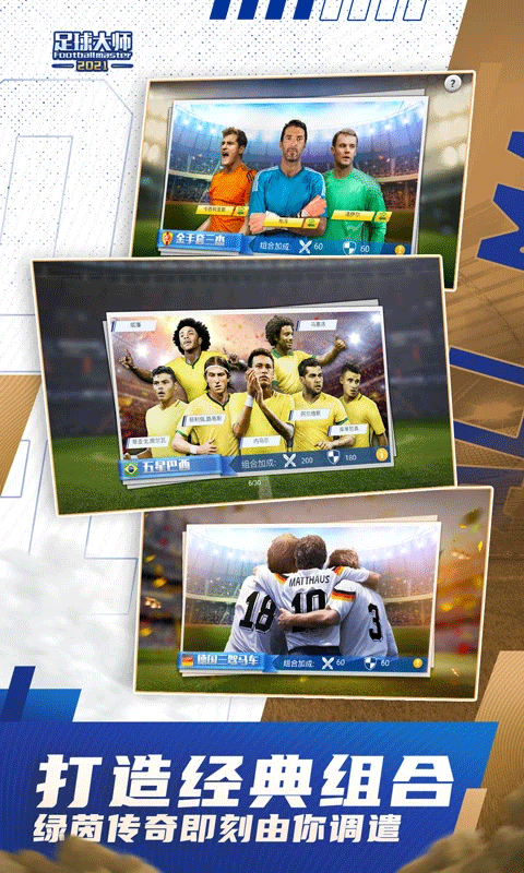 足球大师黄金一代腾讯版是一款非常热血好玩的足球游戏,此版本是由游戏官方和腾讯合作运营的一个版本,支持官方账号、qq账号和微信账号登录,简单又方便,还能领取腾讯的专属礼包,让玩家更快的上手。游戏拥有数十位活跃足坛的知名球星供您选择,拥有梅西、C罗、齐祖、海布里之王、外星人等众多新老球星。该游戏的可玩度相当之高,玩家可以扮演一名传奇球队教练,你需要通过发掘球星、培养球员、参与世界各地联赛,一步一步打造成世界梦幻球队,最终去赢得欧洲杯。在游戏中你能够遇到各种各样的知名球员,可以享受最火爆的激情足球,运用各种不同的体育竞技,激情四射的足球比赛,和全世界众多的足球明星大腕开启最新对决。足球大师黄金一代游戏有许多有趣的玩法内容等你来发掘,还有丰富的战术选择、生动的比赛过程、真实的豪门主场令您身临其境,一定会给你带来全新不一样的游戏体验,感兴趣的小伙伴快来下载体验吧。