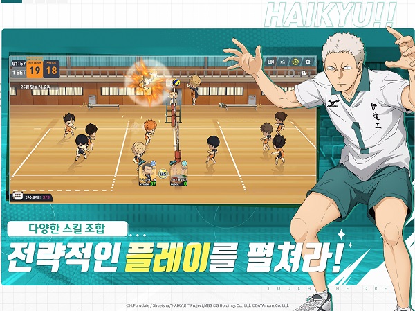 排球少年韩服手游是一款由人气动漫改编的竞技养成类游戏,韩文名全称???!! TOUCH THE DREAM,在游戏中玩家可搜集球员角色卡,并透过自己组成的队伍来进行比赛。怀着排球的热情和毅力聚集在一起的高中排球运动员,百分百还原了动漫原著,如熟悉的乌野、音驹、青叶城西、伊达、枭谷等学校的球员们将以可爱的Q版模型出现在球场上。不仅如此,本作还邀请了动画的原班人马进行配音,重现主人公日向翔阳的热血排球物语,玩家也能再次体验那个青春又感动的故事。