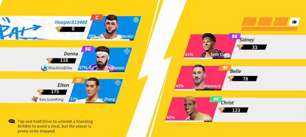 比赛真实匹配实时竞技,投篮、传球等操作手感顺畅,保证无卡顿的比赛体验,享受毫秒级对抗的刺激!