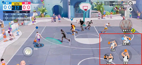 使用时机:当球员面前没有太多干扰因素时,就是投篮的好时机。此外,当操作球员靠近篮筐时,配合方向键还会触发“上篮”或者“扣篮”。