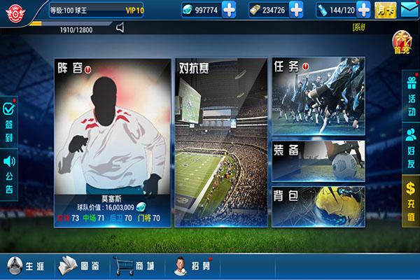 2、球员巨星还可以对其装备,时装伴有特能力,超多的球服套装等待你的开启。