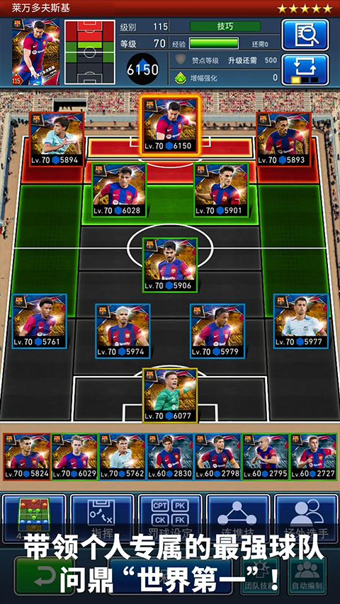 先给大家说说提升战力的方法吧,我怕写到后面忘记了,获得18个不同球员之后先将这些球员升级到60以上就满7万了,相同的球员不能同时上场这个我就不多说了,所以重复的球员不能提升战力,这个大家注意一下就行。