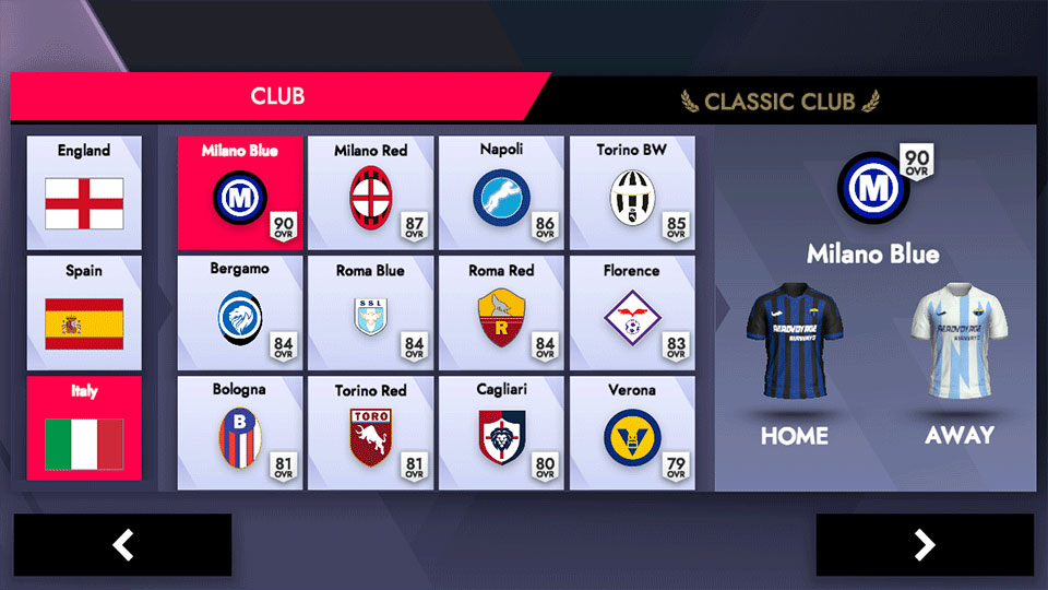 3、比赛开始前,可在外观定制界面自由更换球员球衣样式、队徽风格以及比赛用球类型,打造独一无二的视觉风格。