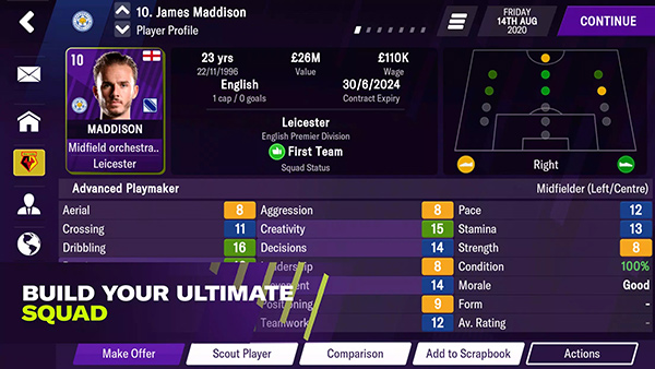 足球经理2021手机版是一款非常火爆的体育竞技类型的动作冒险独立游戏,新的内容与游戏特性升级带来了更多的游戏深度、故事性和足球世界的真实性。游戏中玩家将会成为一名足球队的经理,你可以从一个管理者的视角来对自己喜欢的队伍做出决策,你可以交易球员、雇佣员工、规划战术等,不仅能够自由组件自己喜欢的阵容,将喜欢的球员归入麾下,也能够让他们上场用最华丽的战术来踢赢比赛。