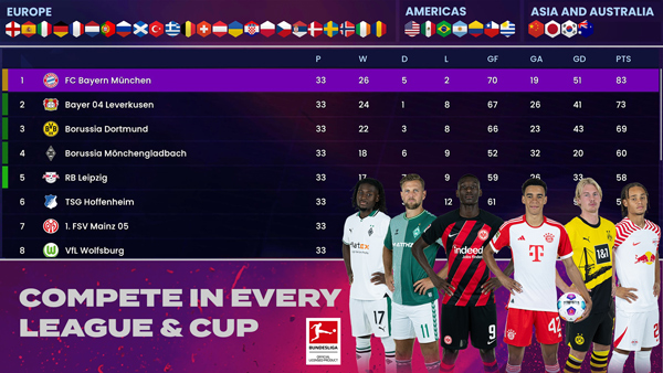 - 在您在俱乐部证明自己的能力后,成为著名的国际足球经理,拥有近 100 支国际球队来控制和指导。