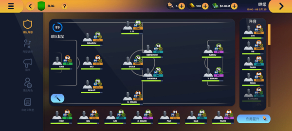 3、计划训练课程、选择首发前11人、以制胜战术智胜对手。