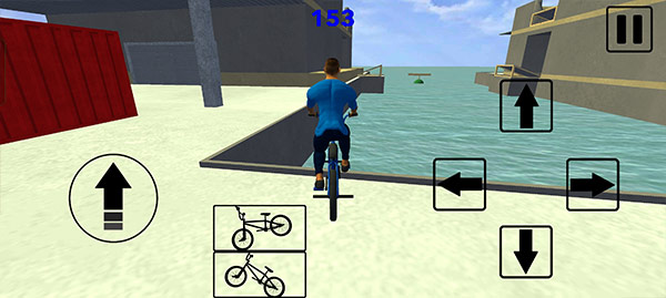 4、进入游戏之后,右边的上下左右上个箭头分别是控制自行车的行驶方向;