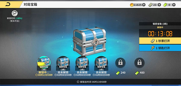 赢得对局会让你获得宝箱,根据对局的情况获得不同品质的宝箱,获得的宝箱会存放到宝箱位置。对局获得的宝箱开启需要消耗一定的时间,如果你想快速打开,可以使用钞票或者时间钥匙。