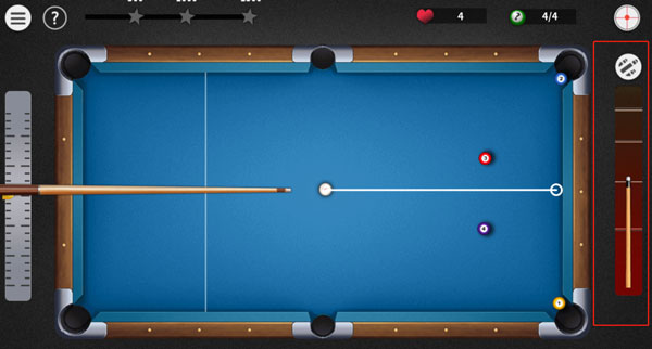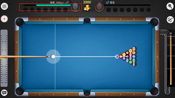 1、触摸屏幕来调整方向,拖拽右边的力度条,松开後击球